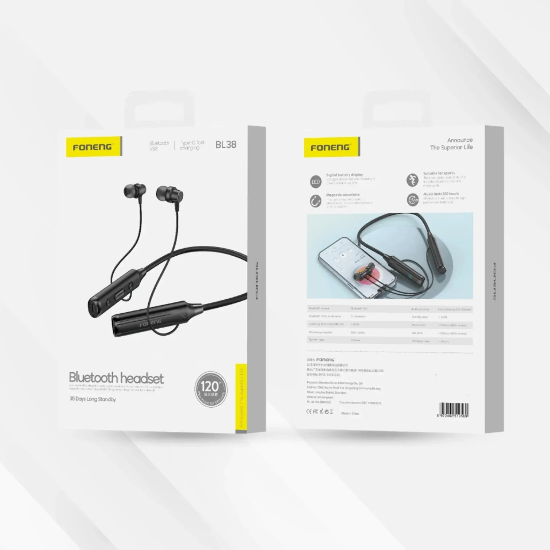 سماعة FONENG BL38 بتصميم Neckband حول الرقبة توفر لك بطارية قوية جدًا وتشغيل طويل جدًا للموسيقى والمكالمات مع اتصال بلوتوث مستقر وتصميم مريح للاستخدام اليومي. ( المميزات)| 🔋- بطارية 800 mAh تدوم حتى 120 ساعة تشغيل موسيقى 📶 Bluetooth 5.3- لاتصال سريع ومستقر حتى 10 أمتار 📱 - شاشة رقمية لعرض نسبة البطارية بشكل واضح ⚡- شحن سريع عبر منفذ Type‑C في حوالي 3 ساعات 🎤 - ميكروفون مدمج للمكالمات 📀- دعم تشغيل الملفات من بطاقة TF (تشغيل مباشر للأغاني) 🔗- تصميم Neckband حول الرقبة مريح وسهل الحمل ( المواصفات)| الموديل: FONENG BL38 النوع: سماعة بلوتوث Neckband إصدار البلوتوث: 5.3 مدة تشغيل الموسيقى: حتى 120 ساعة مدة الانتظار: حتى 35 يومًا بطارية: 3.7 V، 800 mAh وقت الشحن: حوالي 3 ساعات منفذ الشحن: Type‑C المدى: حتى 10 أمتار التوافق: مع جميع أجهزة Bluetooth التحكم: تشغيل/إيقاف، مستوى الصوت، تغيير المقاطع