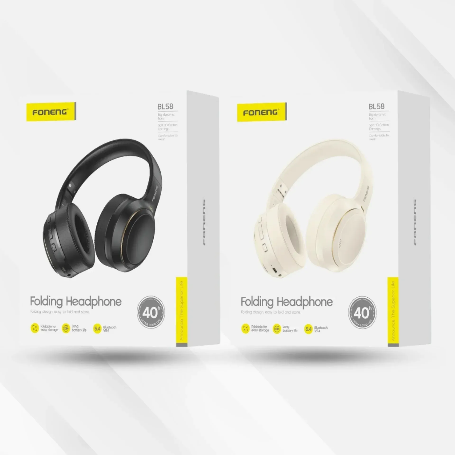 سماعة رأس FONENG BL58 لاسلكية بتصميم قابل للطي يجعلها سهلة الحمل والتخزين، مع بطارية قوية وصوت واضح، مناسبة للاستخدام اليومي، المكالمات والموسيقى أثناء التنقل. ( المميزات )| 🔊 - تصميم قابل للطي لسهولة الحفظ والحمل 📶 - Bluetooth 5.4 لاتصال سريع ومستقر 🔋 تشغيل موسيقى يصل حتى 40 ساعة ببطارية قوية 🔌 مدخل Type‑C للشحن السريع 🎤- ميكروفون مدمج للمكالمات 🎧- سماعة أذن كبيرة بحجم 40 مم لصوت واضح 📱- اتصال مستقر حتى 10 أمتار ( المواصفات )| الموديل: FONENG BL58 النوع: سماعة رأس بلوتوث قابلة للطي إصدار البلوتوث: 5.4 مدة تشغيل الموسيقى: حتى 40 ساعة وقت شحن البطارية: حوالي 2 ساعة حجم مكبر الصوت: 40 مم منفذ الشحن: Type‑C المدى: حتى 10 أمتار